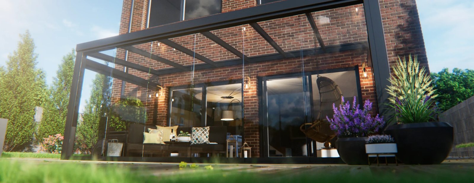 Modern vakmanschap komt samen in het hoogwaardige aluminium frame met staal verstevigd gootprofiel. Het gelaagde veiligheidsglas zorgt niet alleen voor optimale transparantie, maar biedt ook de nodige bescherming tegen weersinvloeden. Zo verleng je je woonplezier tot ver in het voor- en naseizoen.